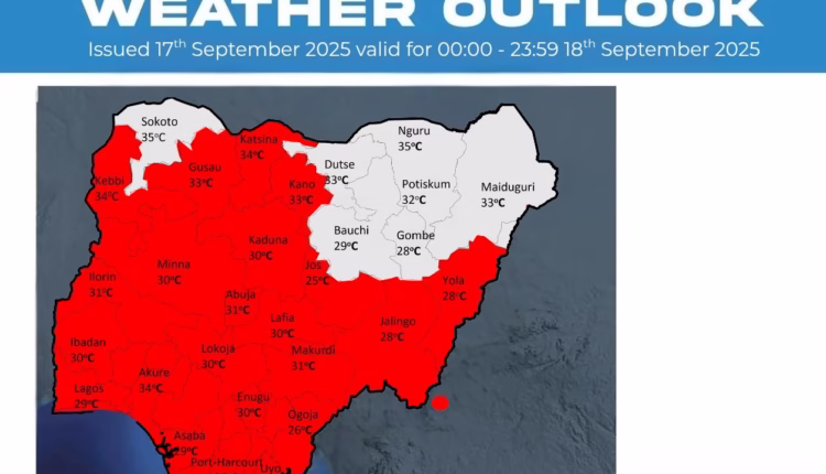 Hukumar Hasashen Yanayi ta Najeriya, NiMet, ta bayyana cewa za a samu ruwan sama mai tafe da guguwar iska a wasu sassan ƙasar a ranar Alhamis, 18 ga Satumba, 2025.